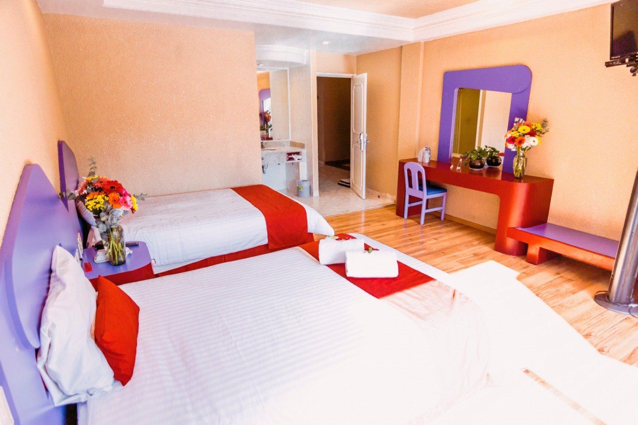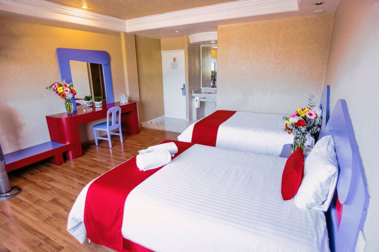 Nuestras habitaciones estándar cuentan con dos camas matrimoniales; así como una terraza al aire libre con vistas a nuestro magnifico jardín con piscina. Después de un día lleno de actividades podrás relajarte con la pantalla con servicio de cable, la música estéreo o en la terraza privada.